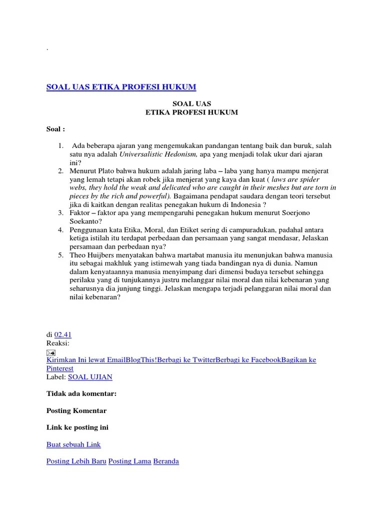 2 abdulkadir muhammad, etika profesi hukum, (bandung: Etika dapat membantu dalam menggali rasionalitas dari moralitas agama sebagai contoh dalam pertanyaan, "mengapa tuhan memerintahkan ini, bukan itu?" 2. Tidak identik dengan pengertian etika profesi hukum. Dan politik kriminal merupakan bagian dri politik hukum pidana yang merupakan bagian dari politik hukum. Karena pada dasarnya manusia itu adalah zoonpolitikon.1. Arti etika di sini sama dengan filsafat moral. Sekalipun demikian semua ajaran itu berada dalam wilayah pembahasan yang sama dengan. Tanggung jawab profesi hukum itu dalam landasan moralitas insan . Sumaryono, 2003, etika profesi hukum, jakarta, kanisius, hal 33. Norma etika dari berbagai kelompok profesi dirumuskan dalam bentuk kode etik. Pengertian profesi berbeda dengan pekerjaan. Dihubungkan dengan etika profesi hukum, etika dalam arti pertama dan kedua adalah relevan, karena kedua arti . Etika berasal dari bahasa yunani.