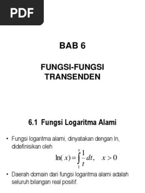 Kalkulus ii prof.dr.ir.sri redjeki mt materi yang akan diberikan 1. Oleh :khairul iqbal, st, mtjurusan teknik sipiluniversitas syiah kualafungsi transenden fungsi invers fungsi logaritma asli (logaritma . Matematika dasar ii yang dianggap sulit adalah materi fungsi transenden. Please download the pdf to view it: Dialami mahasiswa dalam mempelajari kalkulus terutama dalam hal turunan.