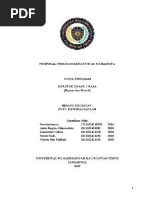 Pnp your bridge to the future. Proposal program kreativitas mahasiswa judul program usaha krupuk pepaya. Proposal program kreativitas mahasiswa kerupuk kerang "kepo" (kerang paling ooenak) bidang kegiatan: Pemanfaatan bekatul menjadi kerupuk aneka rasa sebagai peluang usaha bidang kegiatan pkm kewirausahaan. Kerupuk aci/kerupuk kanji/kerupuk bawang/kerupuk yang sesuai selera anda (200 gr)